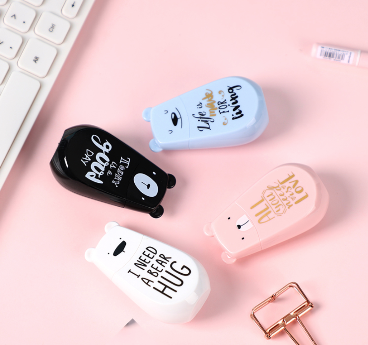 Fix all your mistakes and your mood with this adorable correction tape. Each tape has a cute animal face and two ears on top. What's more, each tape features an inspiring quote. Add a hint of positivity to your everyday with our Bear Hug Correction Tape.