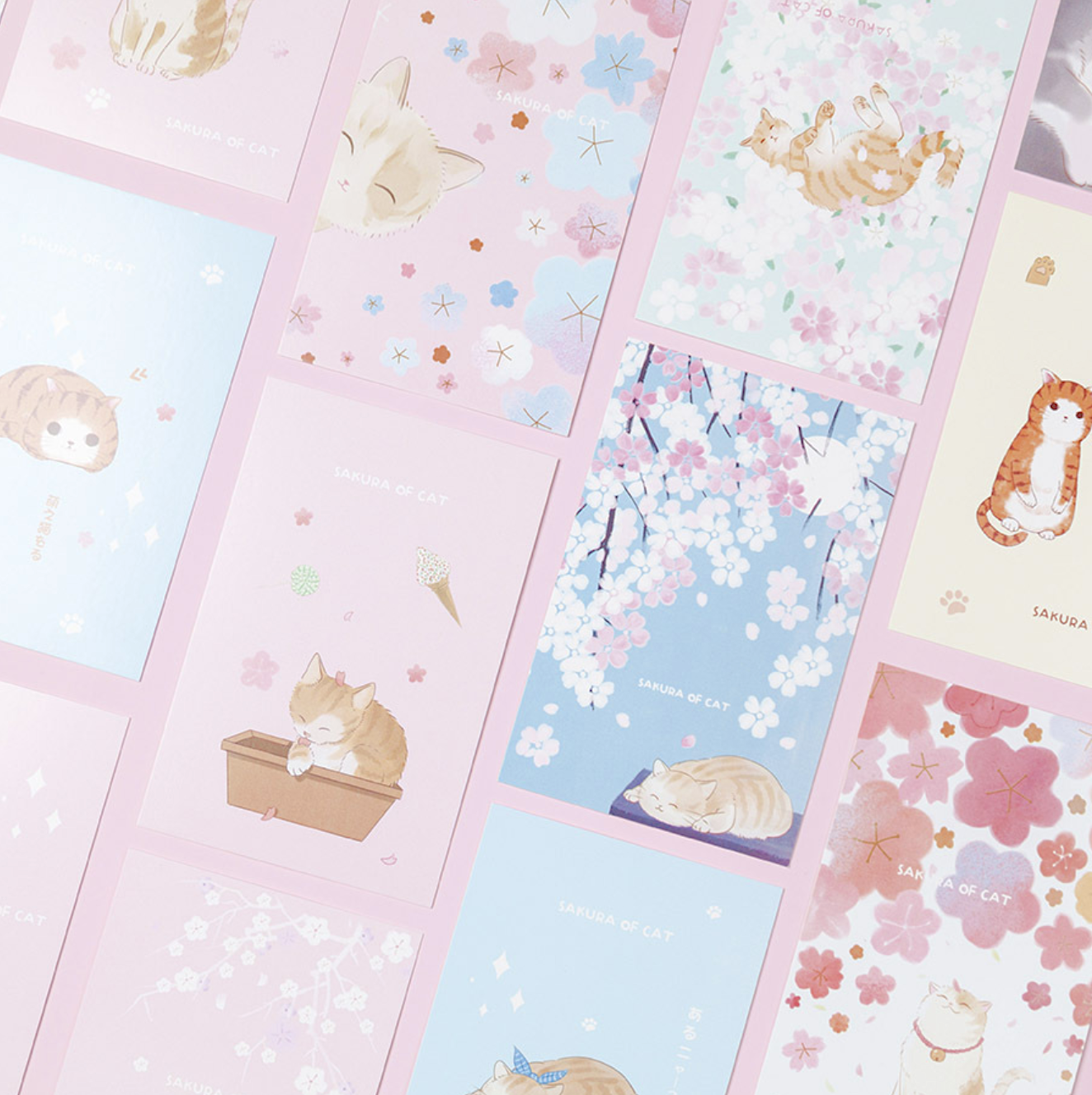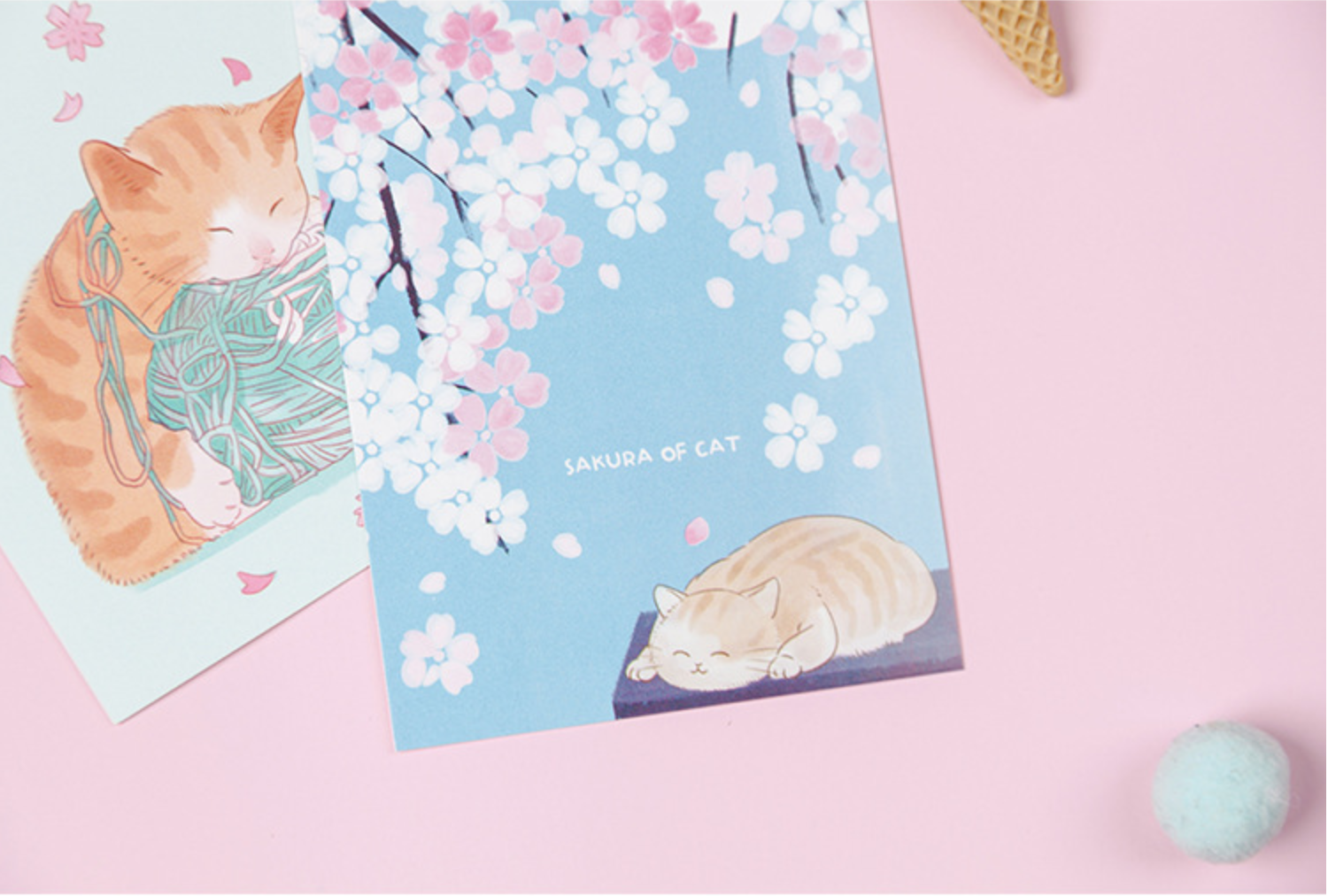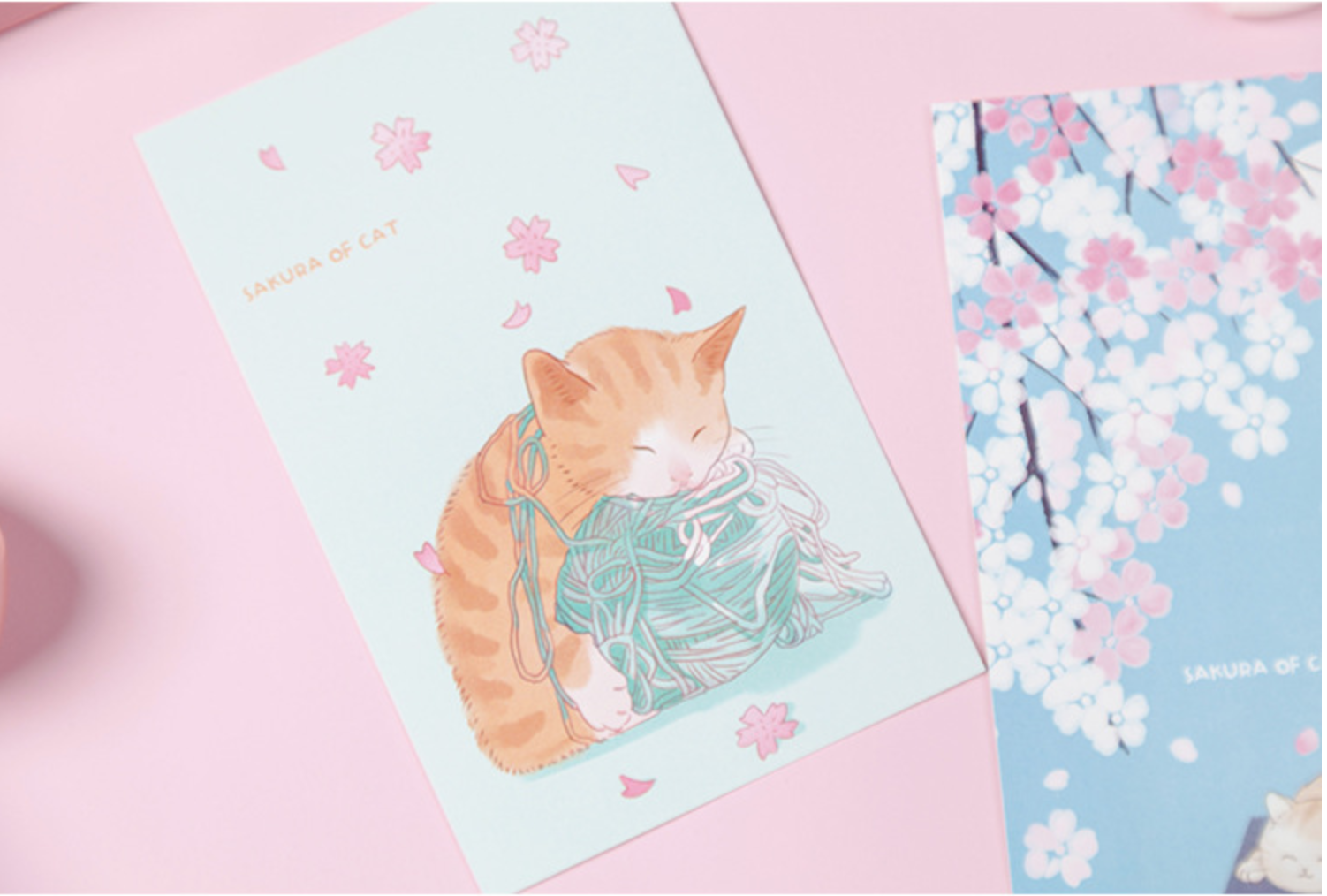 Brighten up someone's day with a lovely card featuring illustrations of cats in beautiful cherry blossom. It's as simple as writing a loving message to someone you care about.