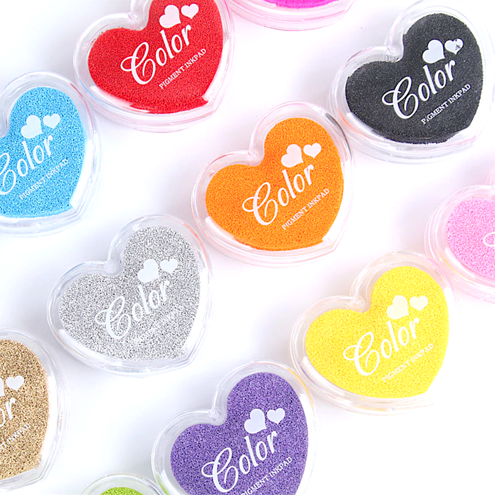 The Classic Heart Shaped Ink Pads feature 12 vivid color inks that show softly on the paper. Its unique heart shape is not only cute but also makes the ink pad more flexible to use. You can use the narrow tip for corners and details. It is a perfect tool for stamping, crafting or scrapbooking.