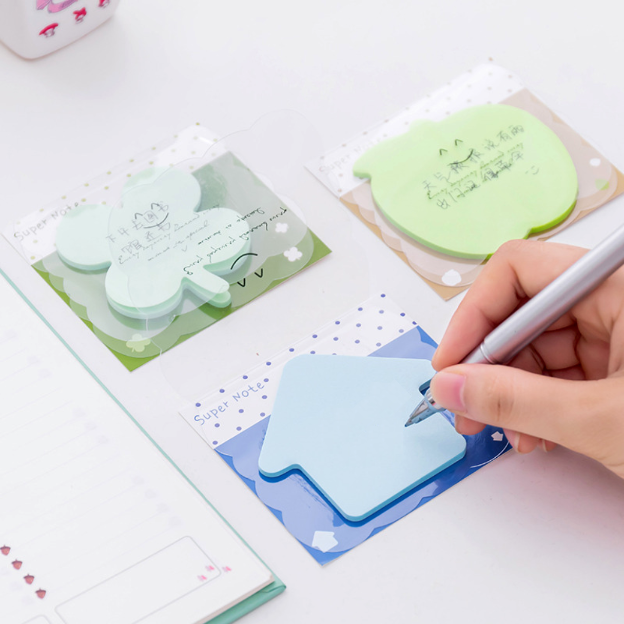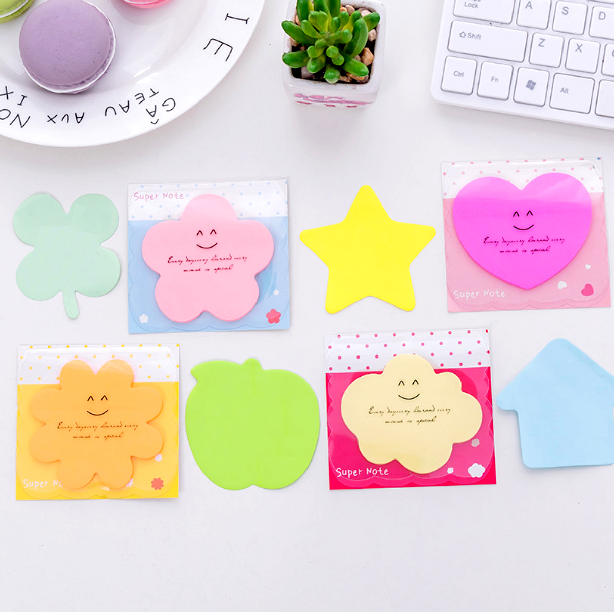 The Smiley Adhesive Memo Pad is a cute little tool for jotting down quick notes, ideas or important reminders. It comes in eight adorable shapes and has a protective plastic cover.