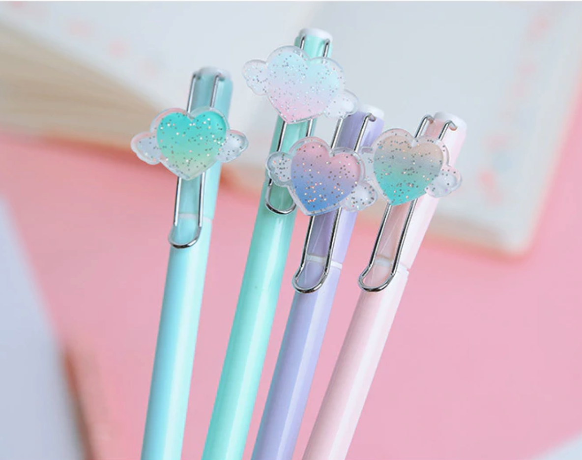 Juice up your notes with these cute Flying Heart Gel Ink Pens. With their lovely pastel color barrels they will brighten up every pencil case.