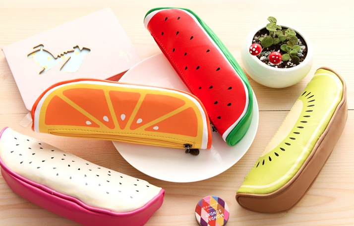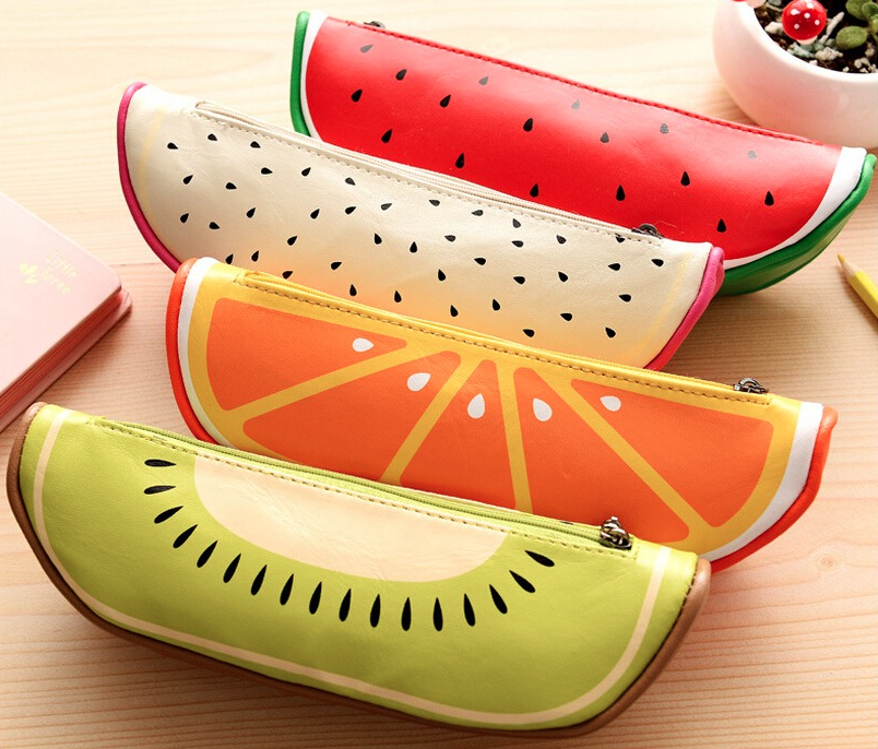 These high quality PU leather pencil cases in shapes of four tropical fruits come as a cute addition to your school supplies set. They are light and spacious so you will be able to comfortably carry them around while storing all that you need inside. Their genuine fruity look will definitely brighten your day!