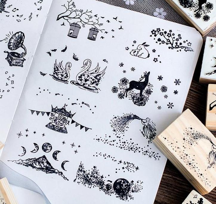 Indulge into your crafting ideas with these beautiful Magic Land Wooden Stamps. They are made out of wood and rubber featuring unique animal and natural designs. These beautiful stamps are perfect for any crafting and scrapbooking DIY projects.