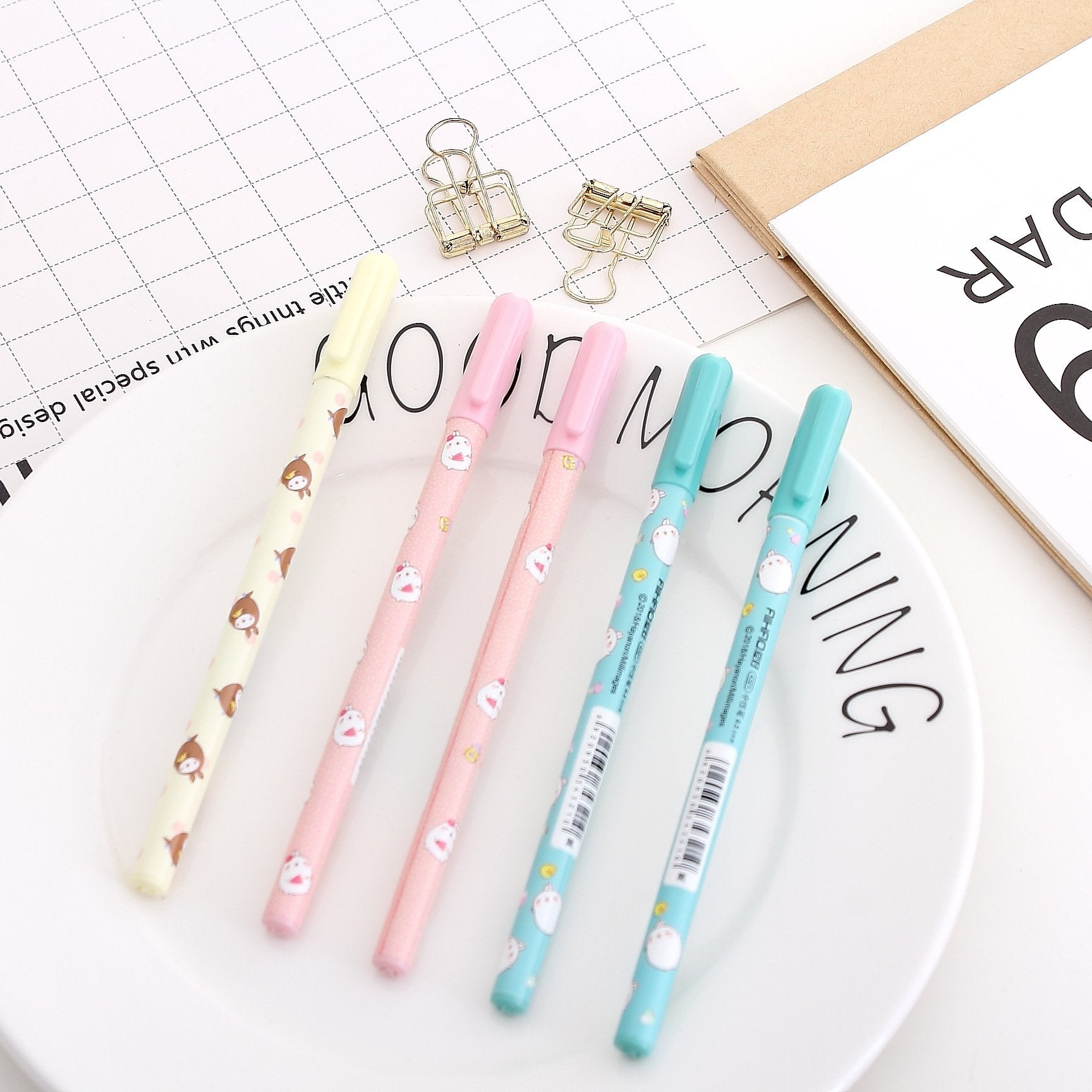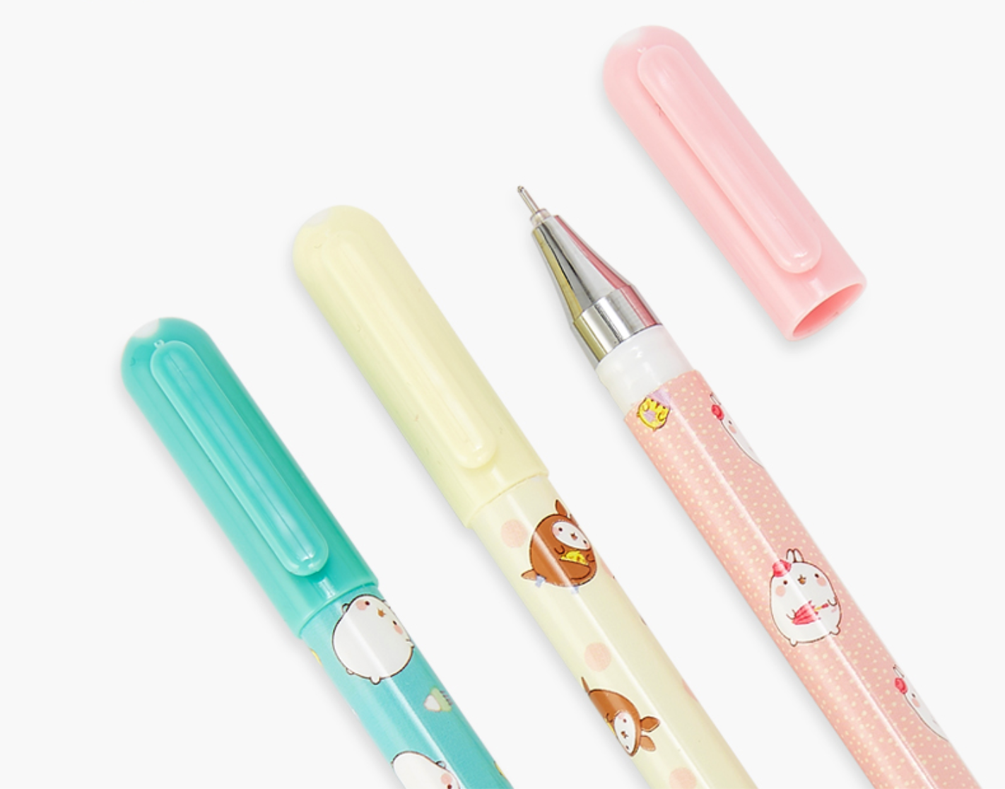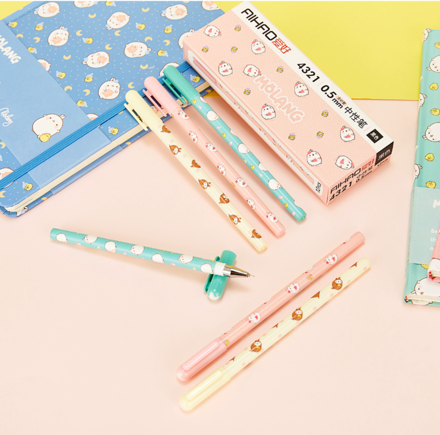 These black gel ink pens are decorated with adorable Molang Rabbit illustrations. Their gel ink is smooth-flowing and creates consistent lines. They are a perfect gift for anyone who loves cute stationery and school supplies.