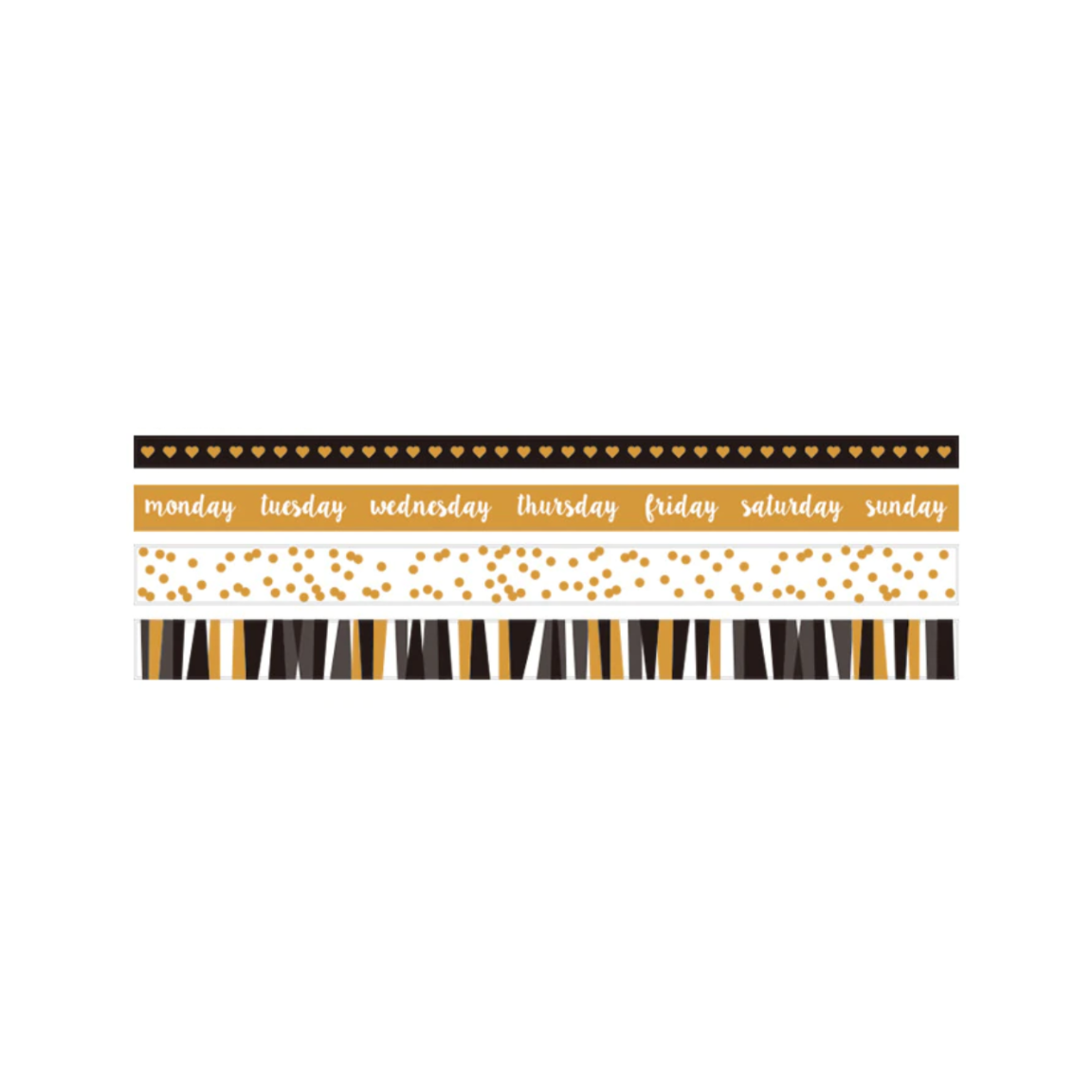 This gorgeous set of decorative masking tapes brings together a combination of black white and gold foil details. The set includes tapes of variety of sizes which makes it perfect for creative journaling or scrapbooking.