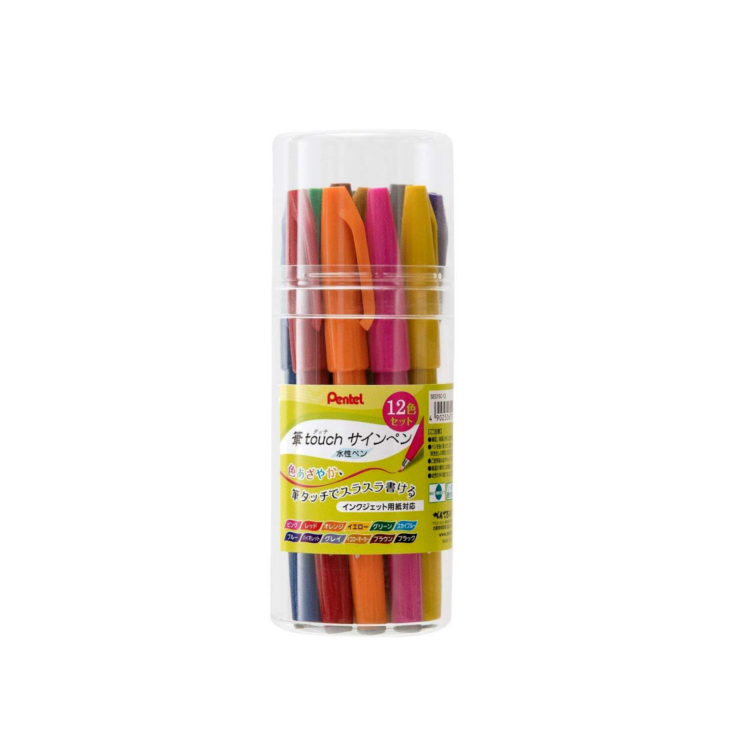 Pentel Fude Touch Brush Sign Pen - 12 Color Set
