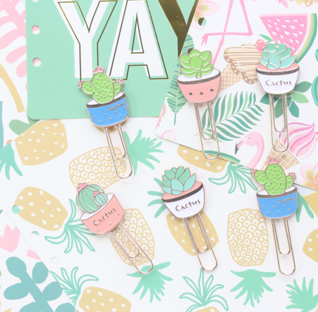Make your notebook or planner stand out with this beautiful Potted Cactus Paper Clips. It can be used as paper clip as well as a bookmark. Each paper clip is individually presented in a transparent box which makes it a perfect little gift.