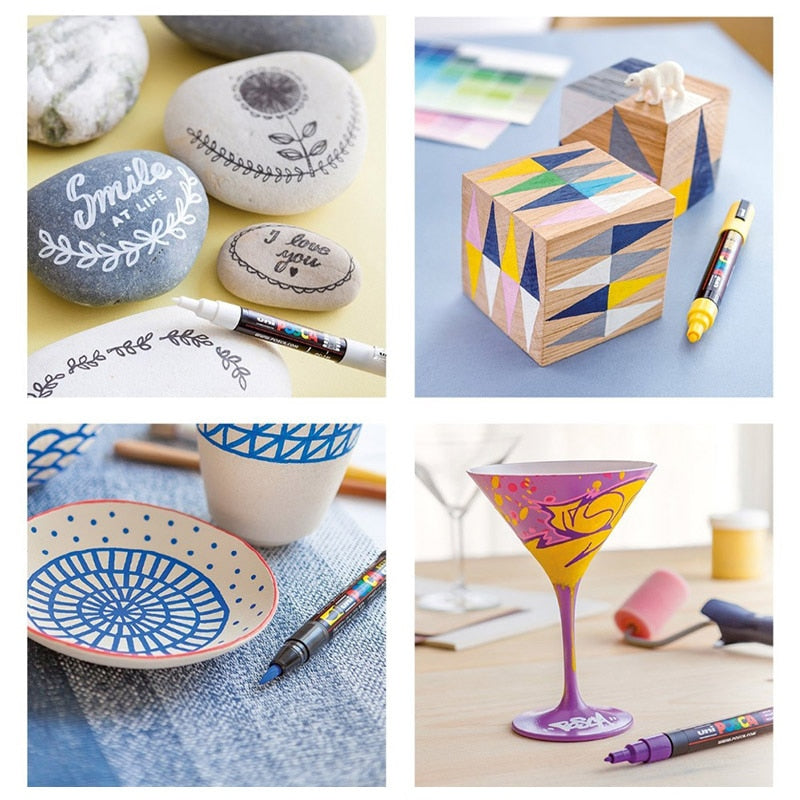 Can you imagining all the fun things we can do with Posca's marker pens? These Posca pens suitable for many surfaces – that includes fabrics, glass, metal, paper, wood, card and ceramics – they're ideal for getting creative and sprucing up your furnishings.